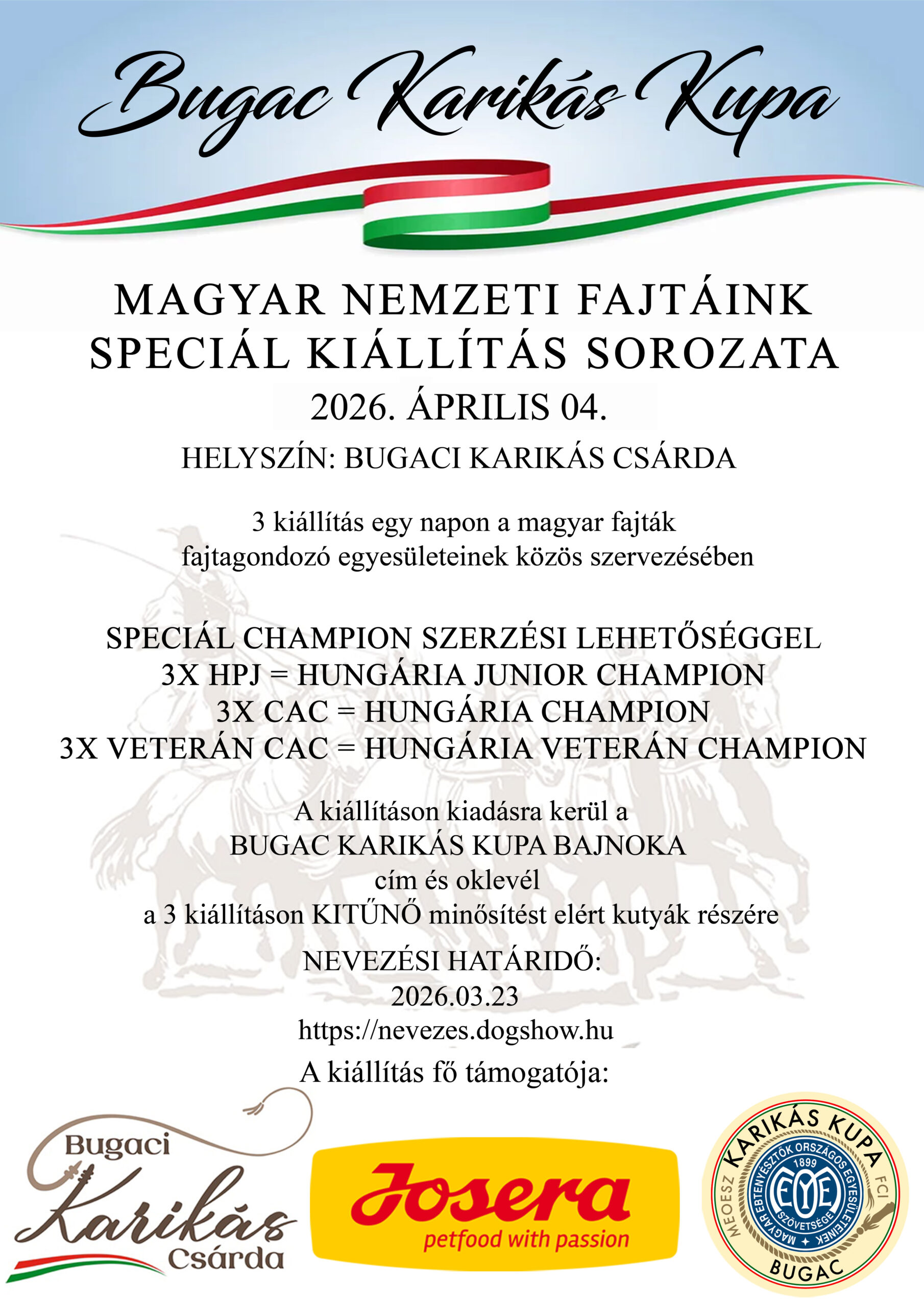 Description - A MEOESZ és a magyarfajták fajtagondozó egyesületeinek közös szervezésében, a már megszokott autentikus helyszínen lehetőségünk lesz újra egy napon elérni Speciál Champion címet. Bővebb leírást a felhívásban találtok a bírói lista mellett. Nevezzetek, gyertek, szeretettel várunk Benneteket! nevezés: https://nevezes.dogshow.hu/ Hungária Puli Klub Vezetősége